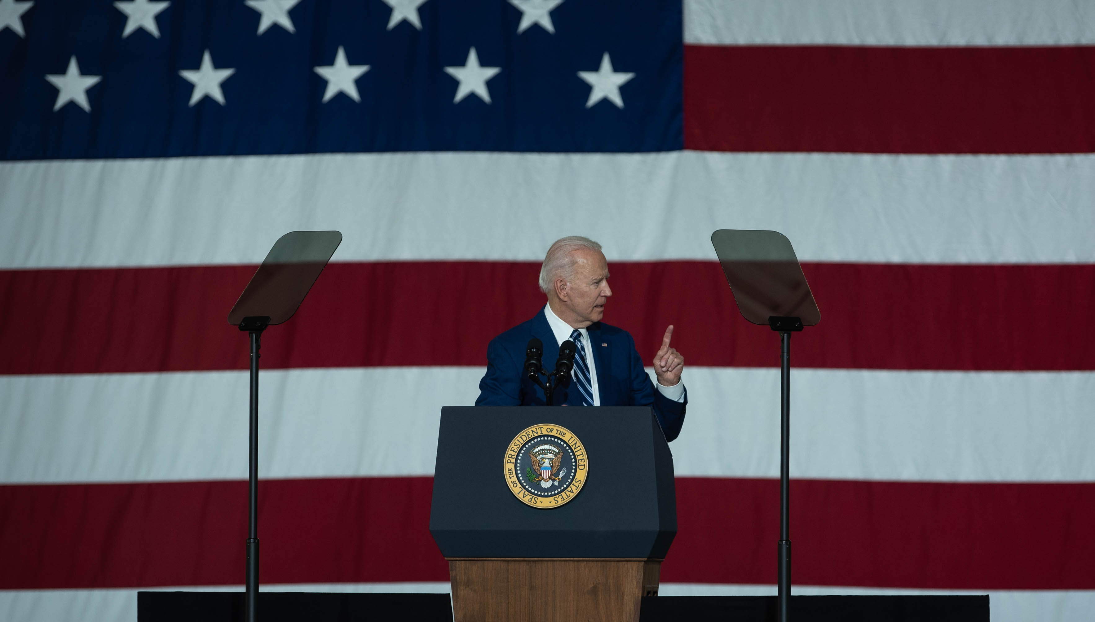 President Joe Biden visited Joint Base Langley-Eustis, Virginia, and addressed service members, May 28, 2021. Biden spoke on the importance of military sacrifice and thanked the members for their continued dedication to defending the nation. (U.S. Air Force photo by Senior Airman Marcus M. Bullock)