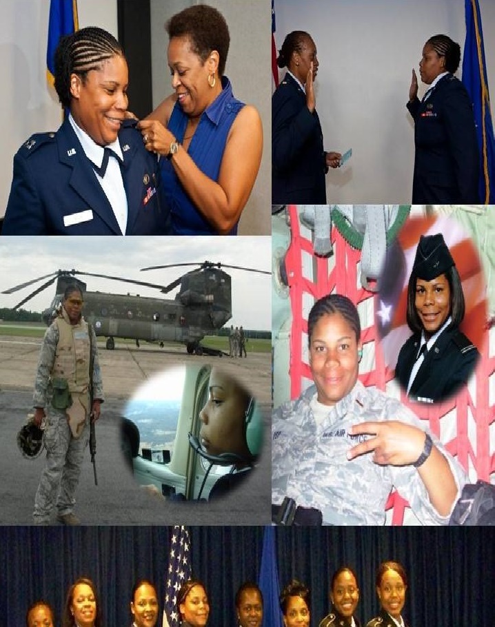 Collage of Maj. Roashelle “Thorn” Rose, of the 453rd Electronic Warfare Squadron (EWS) throughout her career. In October 2021 she received notice that she had been named the Black Engineer of the Year Awards, 2022 Science Spectrum Trailblazer. The Science Spectrum Trailblazer Award is a part of the BEYA Science, Technology, Engineering, and Math (STEM) outstanding Achievement Award Category and goes to individuals who actively shape the future of engineering, science, and technology.
