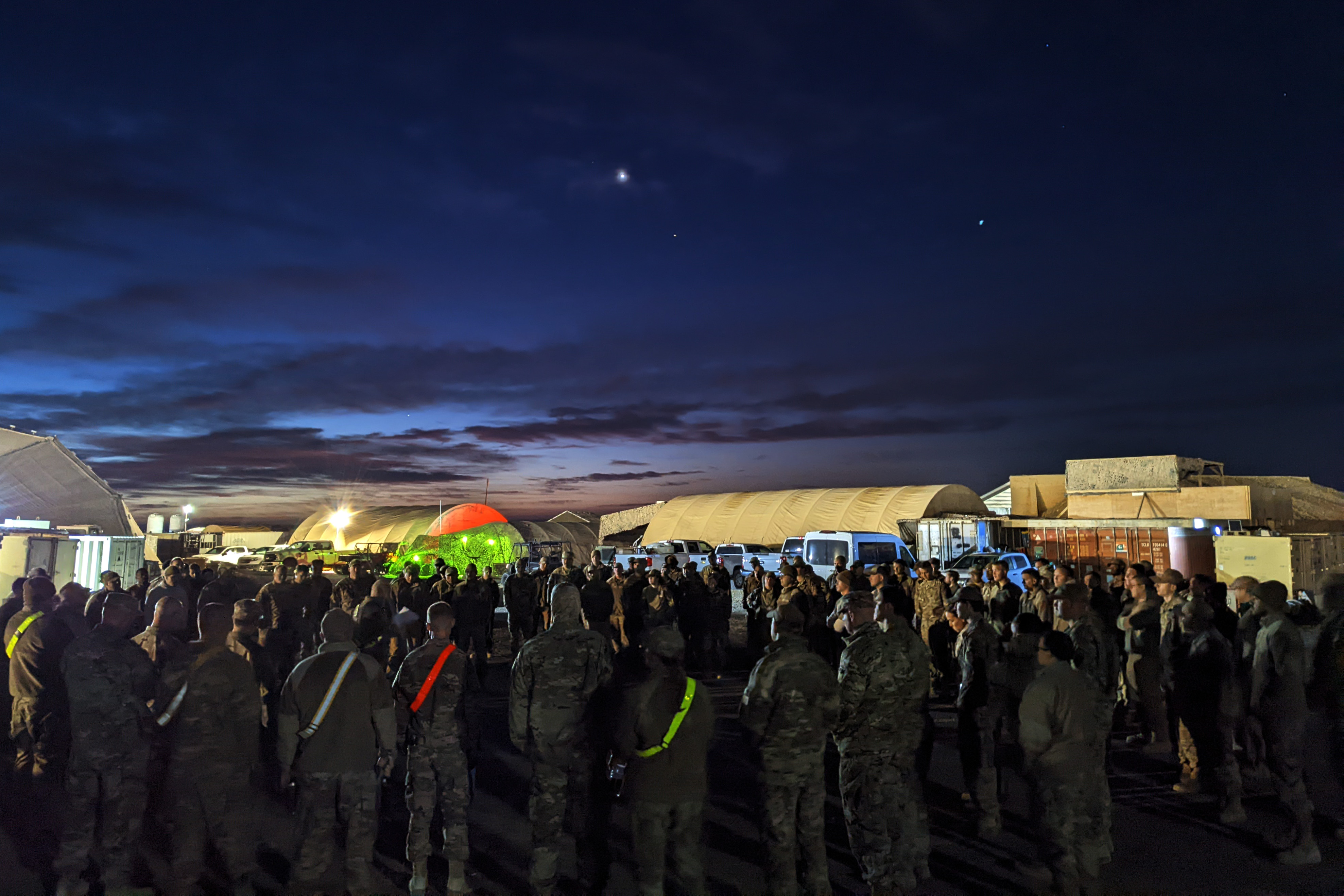 332d Expeditionary Civil Engineer Squadron Airmen receive a briefing for the Rapid Airfield Damage Recovery (RADR) exercise an undisclosed location in Southwest Asia, Feb. 10, 2022. This exercise tested the ability of the 332d ECES to rapidly repair runways and runway support structures to recover and resume airfield operations after it has experienced significant damage. The 332d ECES provides, operates, and maintains a sustainable installation through engineering and emergency response services across the full mission spectrum. (U.S Air Force photo by Tech. Sgt. Lauren M. Snyder)