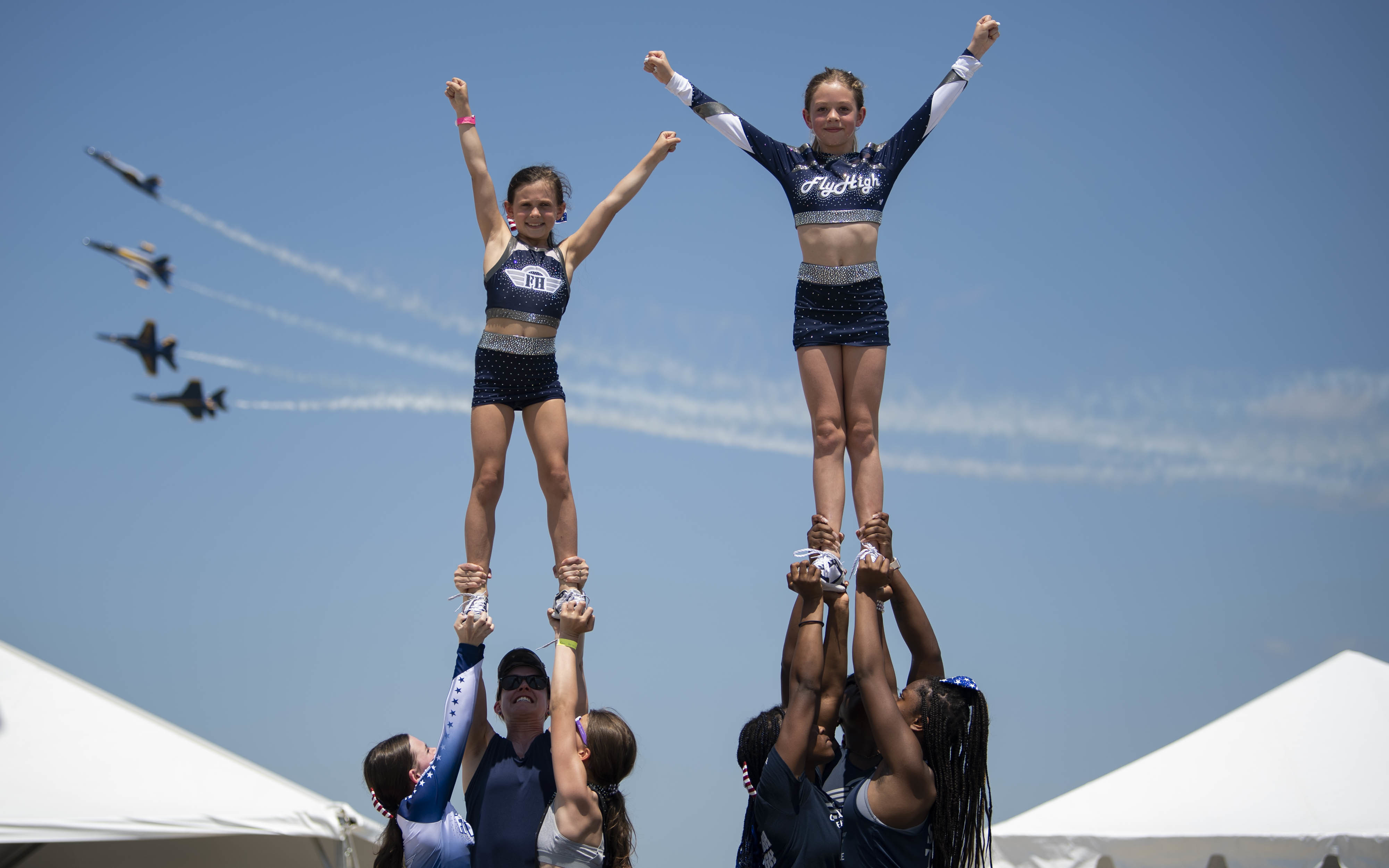 Gymnasts from Fly High gym perform during the 2022 Thunder Over Dover Airshow, May 22, 2022, at Dover Air Force Base, Delaware. The show featured more than 20 different military and civilian aircraft static displays as well as performances from local community members. (U.S. Air Force photo by Tech. Sgt. J.D. Strong II)