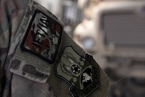 F-15C fighter jets from the 44th Expeditionary Fighter Squadron, Prince Sultan Air Base, Kingdom of Saudi Arabia, fly in formation with two F-15SA Royal Saudi Air Force jets from the 6th Squadron, King Khalid Air Base, Kingdom of Saudi Arabia during an integrated sortie flight in the Kingdom of